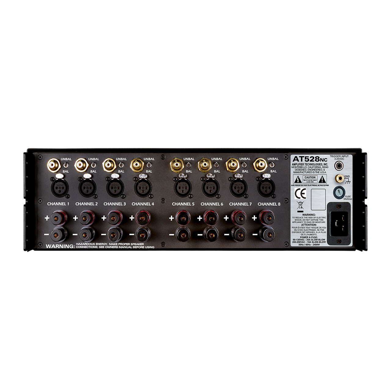 AT500NC系列放大器使用Hypex N-Core D类输出模块和ATI设计的输入缓冲器和线性电源,并提供两种电源配置。