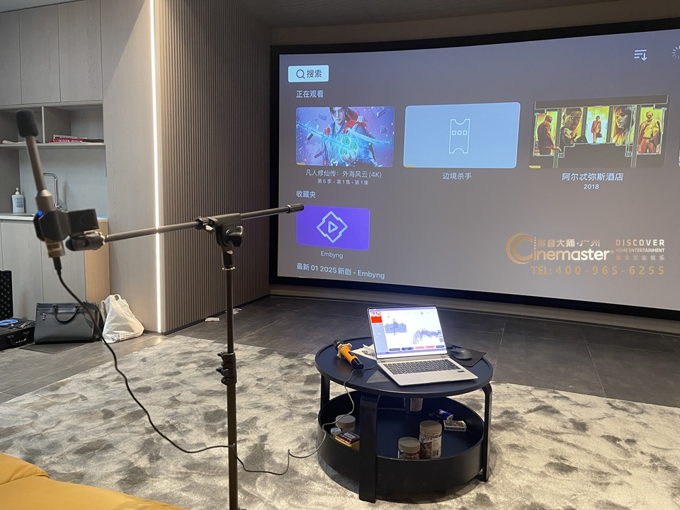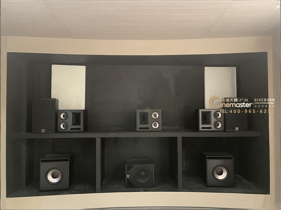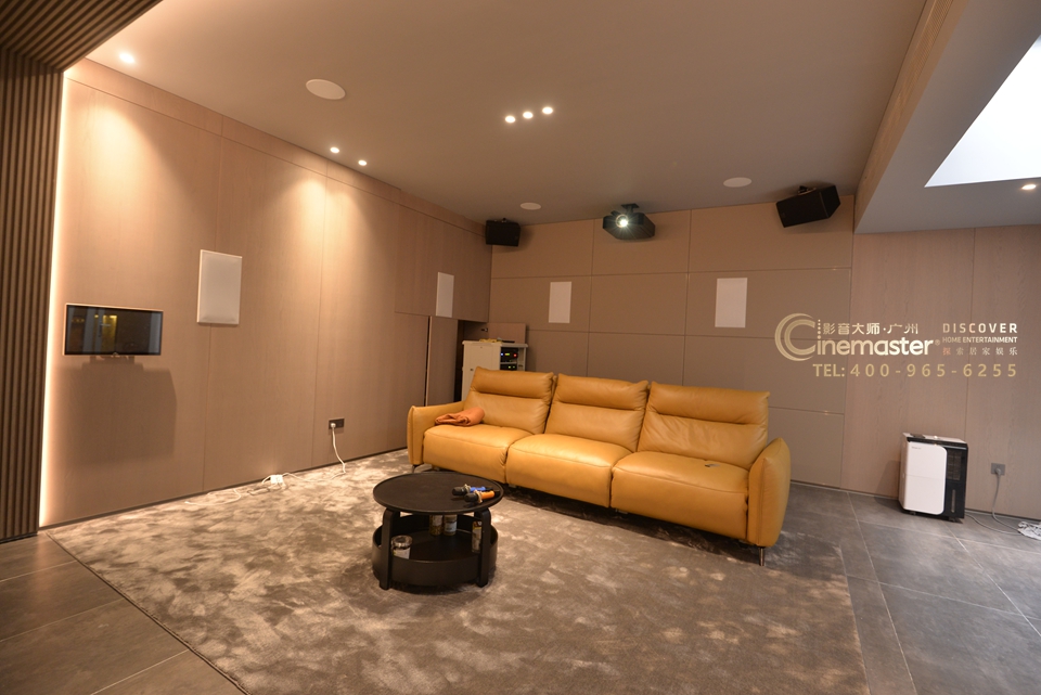 而影音室的核心,无疑是绝佳的视听设备。为了打造沉浸式的观影体验,本案例采用了9.2.4全景声系统。3个主音箱、6个环绕音箱、2个低音和4个天空全景声相互配合,能够精准地定位每一个声音的来源,营造出全方位包围的音效空间。当影片中战机呼啸而过时,你能清晰地感受到声音从头顶上方掠过;当海浪拍打着沙滩时,那澎湃的音效仿佛将你带到了海边,让你身临其境般感受大自然的魅力。