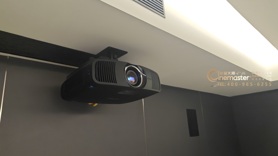 爱普生CH-LS12000B 重量约13公斤,带有2.1倍超大电动变焦,投影200寸屏幕可以最远放置在12.7米位置,此次影音房安装的时候投影机吊装在后墙,此外,投影机还具有强大的电动位移功能,10组镜头记忆功能。爱普生CH-LS12000B是一款4K级专业型家庭激光投影仪,具有2万小时超长寿命,12Bit成像面板,10.7亿色彩还原,约830万像素4K超清画面,高达4K@120HZ插帧显示,250万:1对比度支持+HDR10。