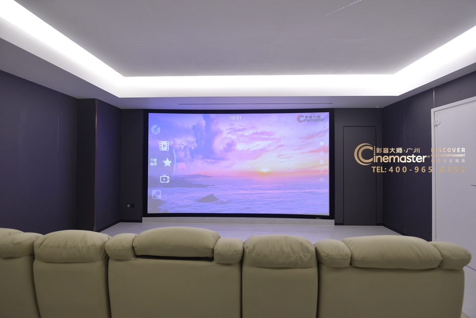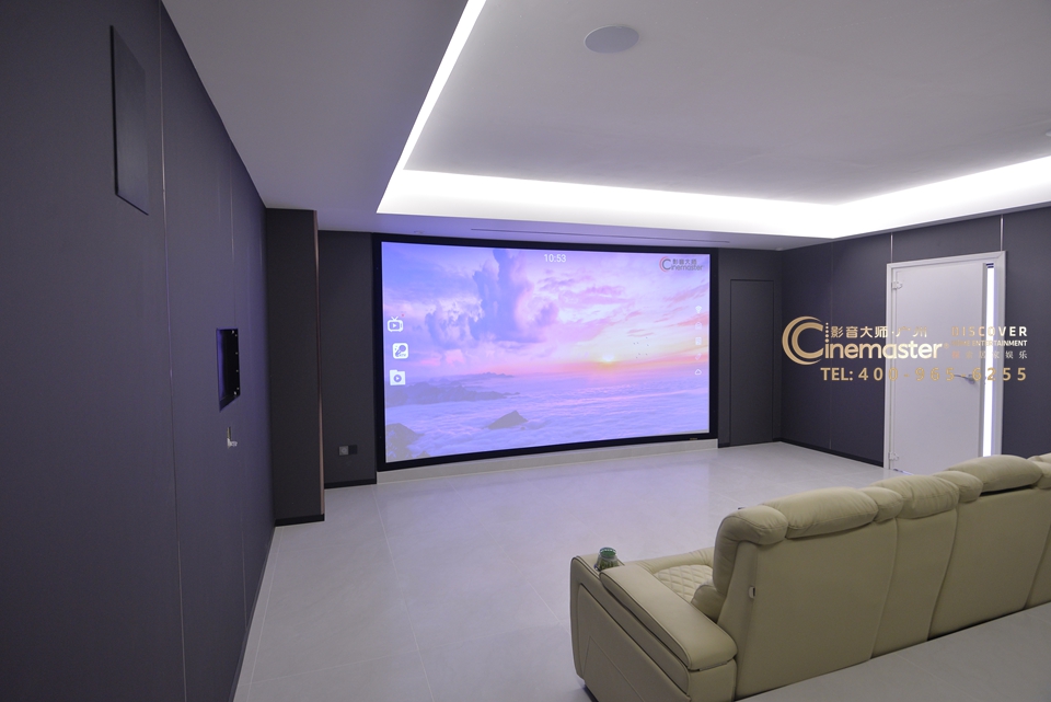 现场完工实地拍摄,180寸弧形画框幕