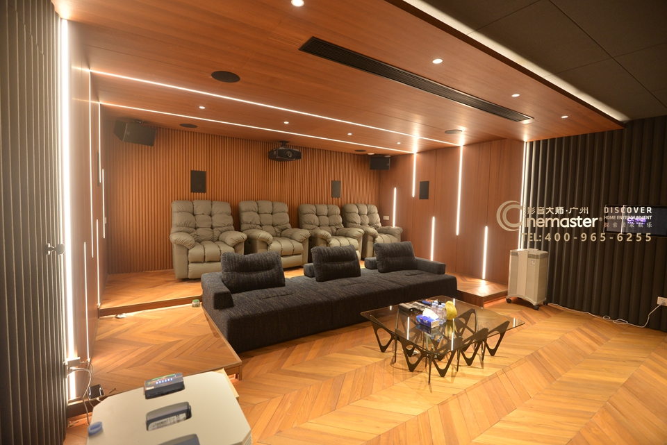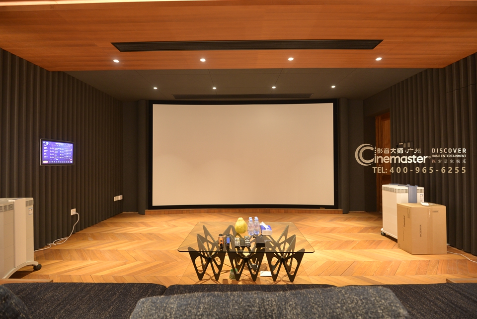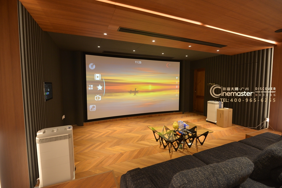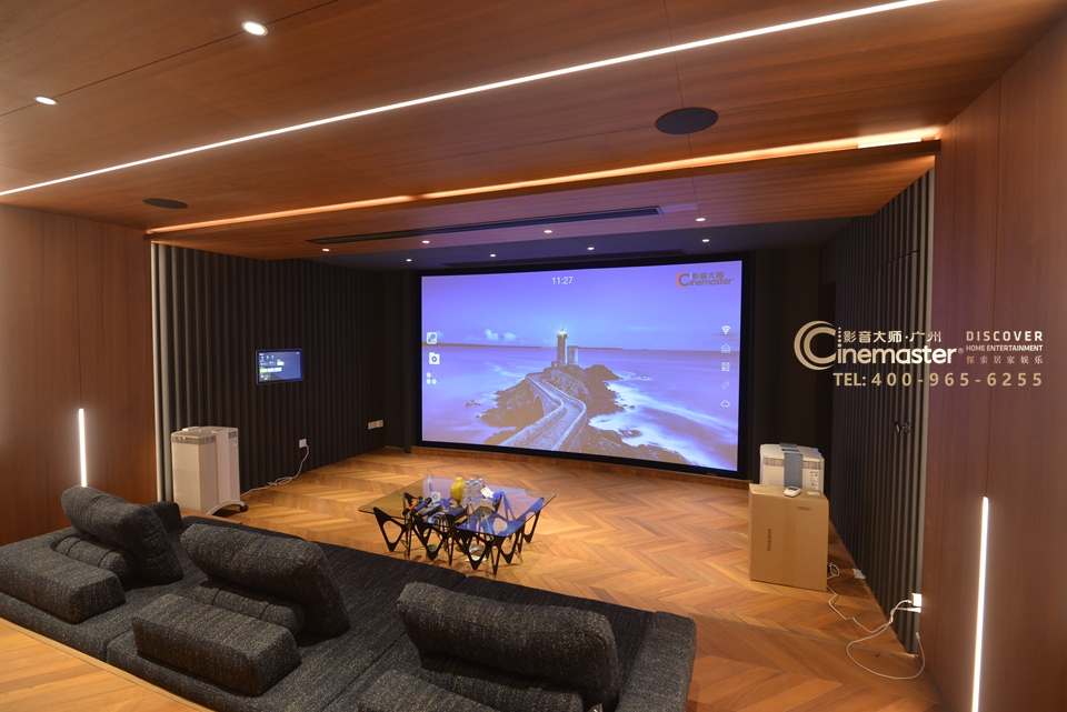 而专业家庭影院的核心,在于 “音画协同 + 声学优化”。以王先生的案例为例,我们在配置上拒绝 “堆砌参数”,而是根据 5.51×7.21m 的空间尺寸精准匹配:画面部分:放弃普通投影仪,选择 4K 激光电视,亮度 2200 流明,搭配 175 英寸幕布,色彩还原度高达 95%,比电影院的普通幕布更细腻 —— 播放《阿凡达 2》时,潘多拉星球的蓝色海洋、荧光植物仿佛触手可及,动态画面无拖影,细节清晰到能看清角色脸上的汗珠。
