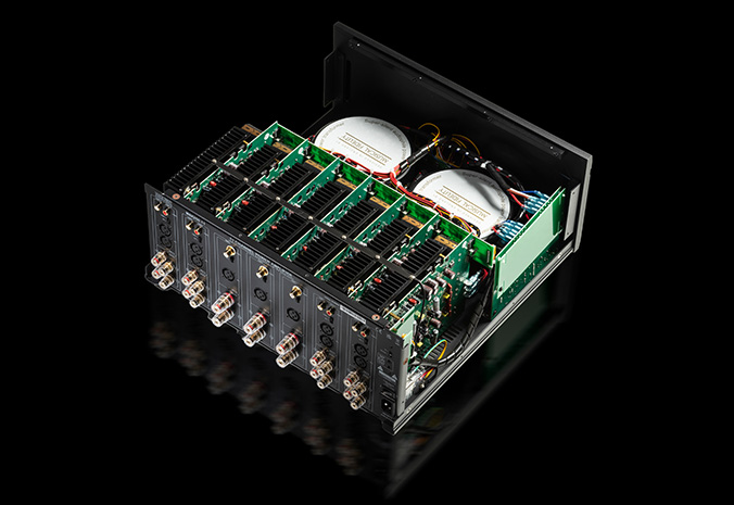 我们的新多声道放大器模块化设计,每个声道(C、RF、LF)配备一个250W的A/B类放大器级,每个效果声道150W。我们设计放大器音质极为自然,保留所有瞬态和微信息。超静音发烧友功率变压器分配干净功率,带来高动态范围和细致的声场。这是家庭影院放大器的重要功能。M6x 250.11能够保持所有细节和情感,无论音量如何。由于复杂的散热器设计,M6x 250.11不需要风扇来保持散热。尽管功率强大,你永远听不到功放发出的风扇噪音。