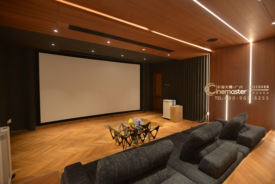而专业家庭影院的核心,在于 “音画协同 + 声学优化”。以王先生的案例为例,我们在配置上拒绝 “堆砌参数”,而是根据 5.51×7.21m 的空间尺寸精准匹配:画面部分:放弃普通投影仪,选择 4K 激光电视,亮度 2200 流明,搭配 175 英寸幕布,色彩还原度高达 95%,比电影院的普通幕布更细腻 —— 播放《阿凡达 2》时,潘多拉星球的蓝色海洋、荧光植物仿佛触手可及,动态画面无拖影,细节清晰到能看清角色脸上的汗珠。