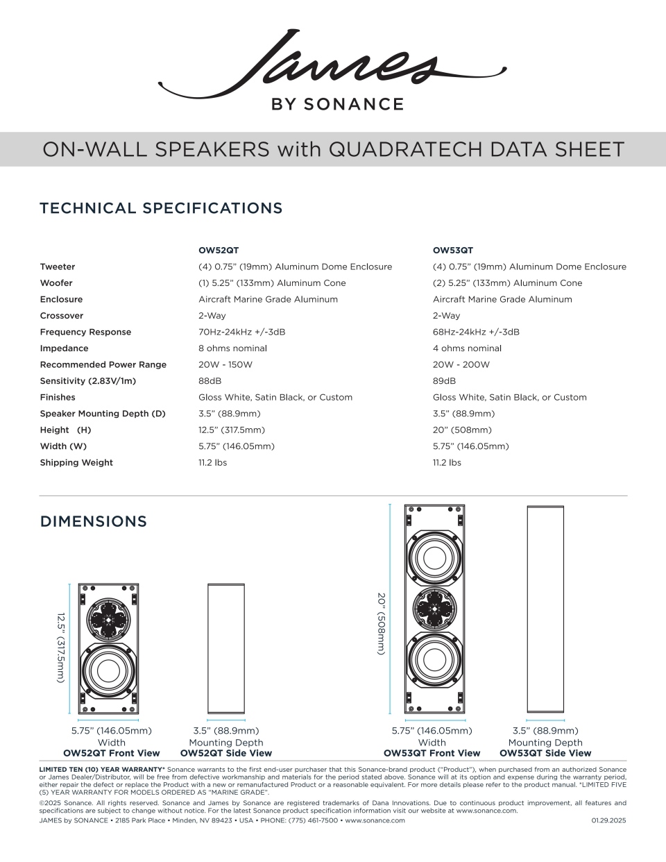 凭借James高分辨率专有低音扬声器和James标志性铝圆顶四阵高音扬声器,这款紧凑的扬声器在从24kHz一直到68Hz以下的广泛频率范围内提供如丝般流畅的响应,灵敏度高达89dB。这款多功能扬声器与James SPL5Q系列完美搭配,提供紧凑的环绕立体声系统,以最小的视觉冲击提供水晶般清晰的音频。它也可以很容易地作为一个独立的墙上或书架扬声器使用。